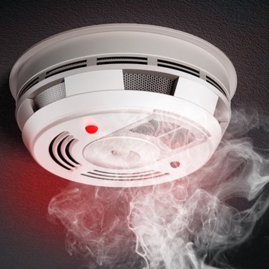 A smoke detector is a device that detects smoke in the area. Commercial smoke detectors that are tied into your fire alarm system will send a signal to the home fire alarm control panel. This activates an audible alarm alerting everyone in the home of the emergency as well as alerting your monitoring company to dispatch emergency services.